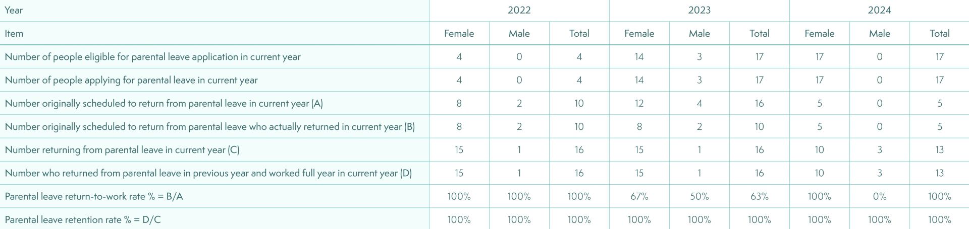 | Number of Non-Managerial Full-Time Employees | Employee | 1,634 | 1,612 | -1% |